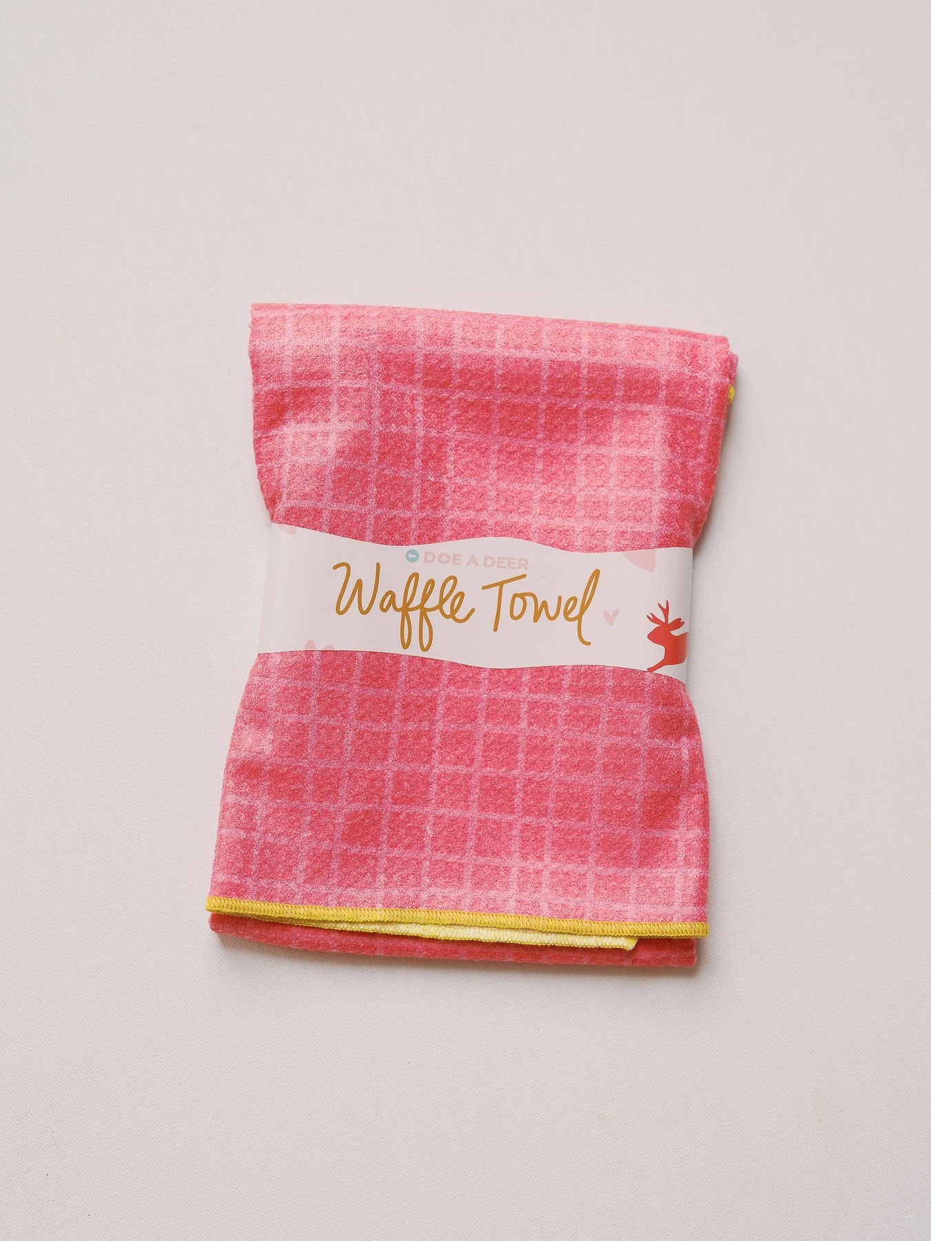 Doe A Deer - Pink Grid Waffle Towel | Microfiber